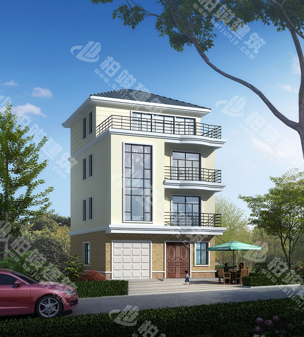 农村四层别墅设计图,小开间小占地,带双层落地窗、车库、屋顶花园